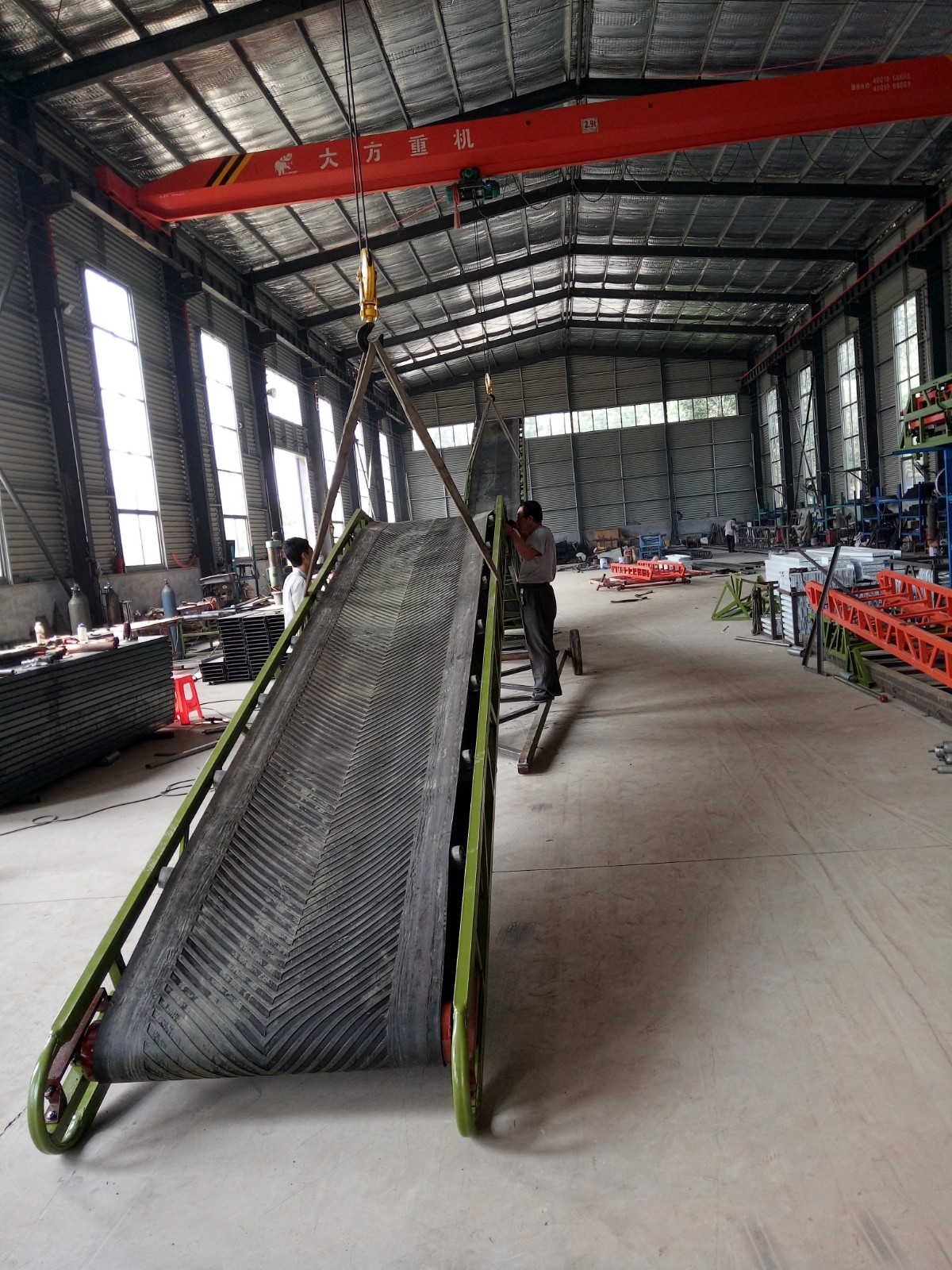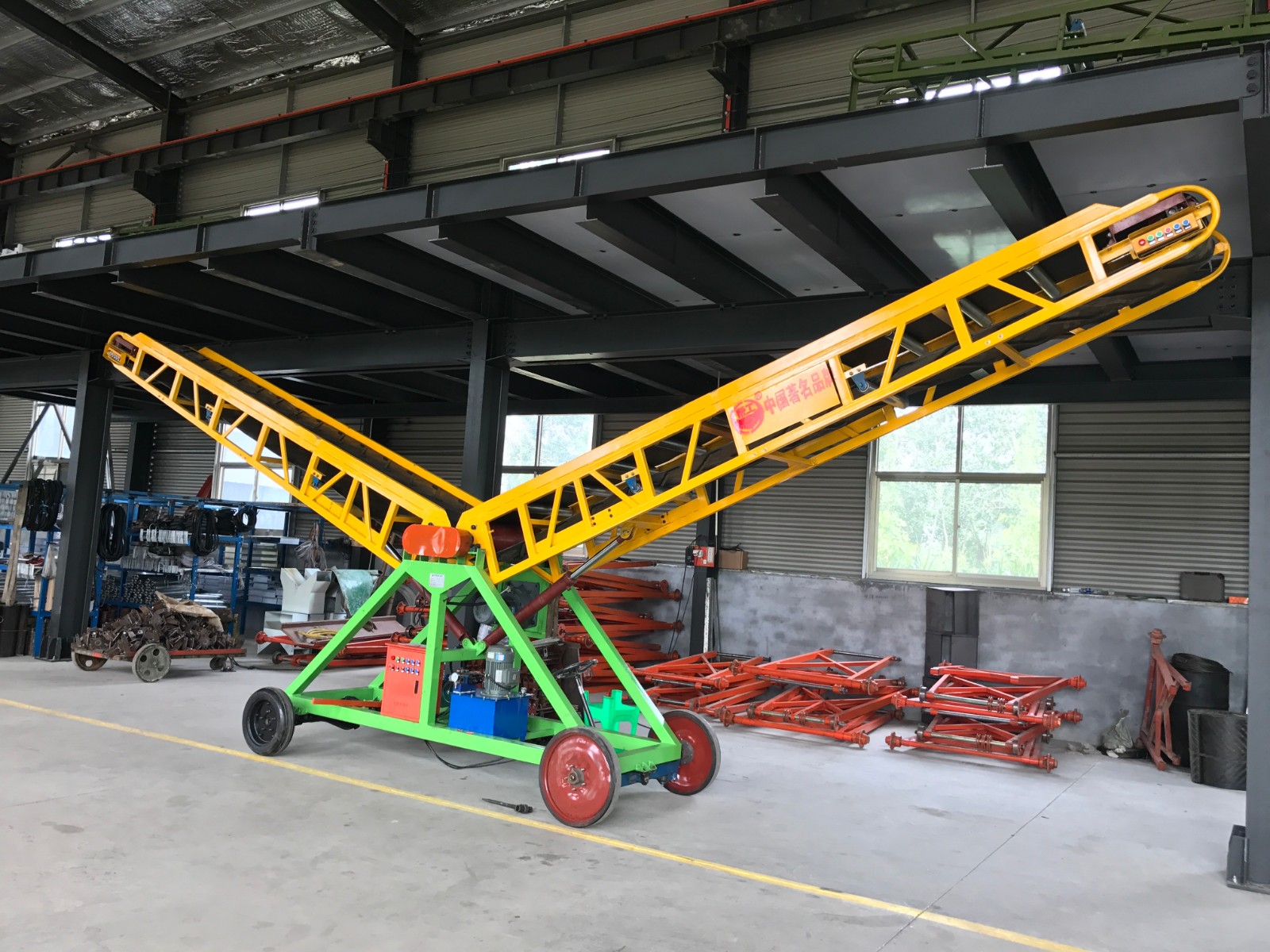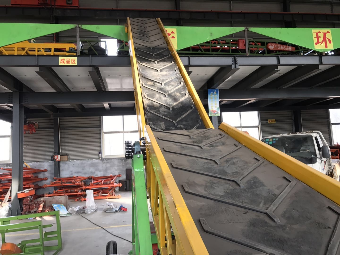 帶式伸縮輸送機(jī)是一種摩擦驅(qū)動(dòng)連續(xù)輸送作業(yè)的輸送設(shè)備。它由纏繞在驅(qū)動(dòng)滾筒和反轉(zhuǎn)滾筒周圍的環(huán)形帶組成,固定在機(jī)架的上下支承輥上。它由皮帶、主動(dòng)滾筒、張緊裝置(包括張緊滾筒)、托輥和傳動(dòng)裝置組成。從…皮帶通過張緊裝置在兩個(gè)滾筒之間張緊。當(dāng)傳動(dòng)裝置帶動(dòng)滾筒轉(zhuǎn)動(dòng)時(shí),…